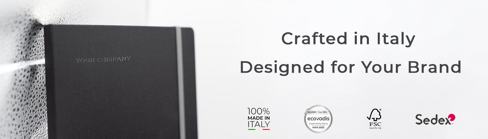 Crafted in Italy since 1926, our notebooks combine timeless bookbinding tradition with modern sustainable materials. Choose from recycled leather, natural fabrics, FSC®-certified papers, and let us tailor every detail to your brand’s identity.
