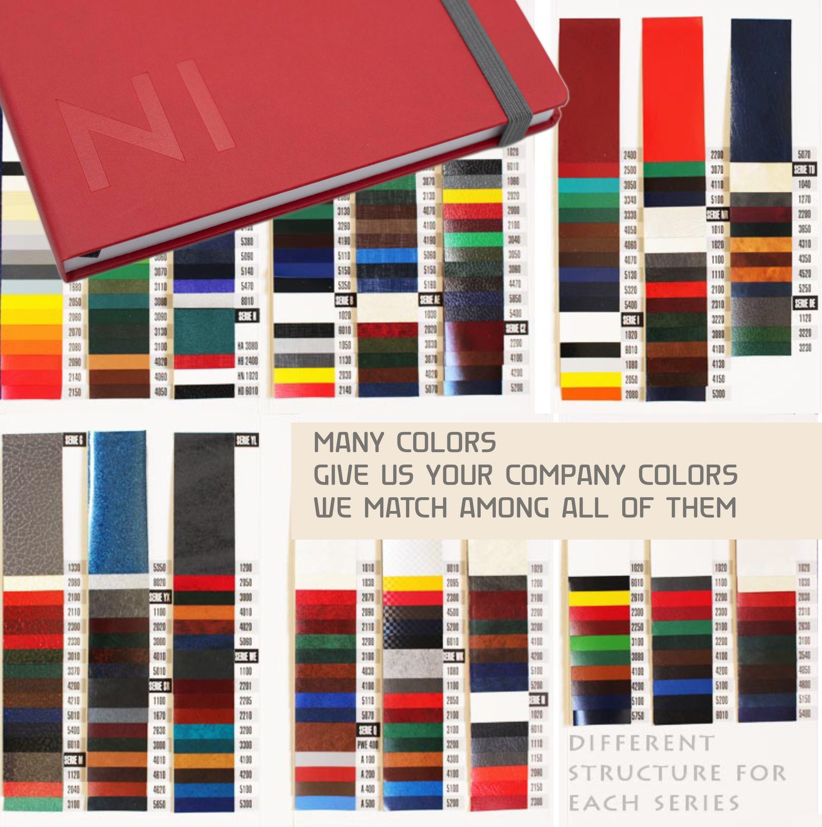 Below you’ll find a selection of our preferred eco-friendly and creative materials used for custom-made notebooks.