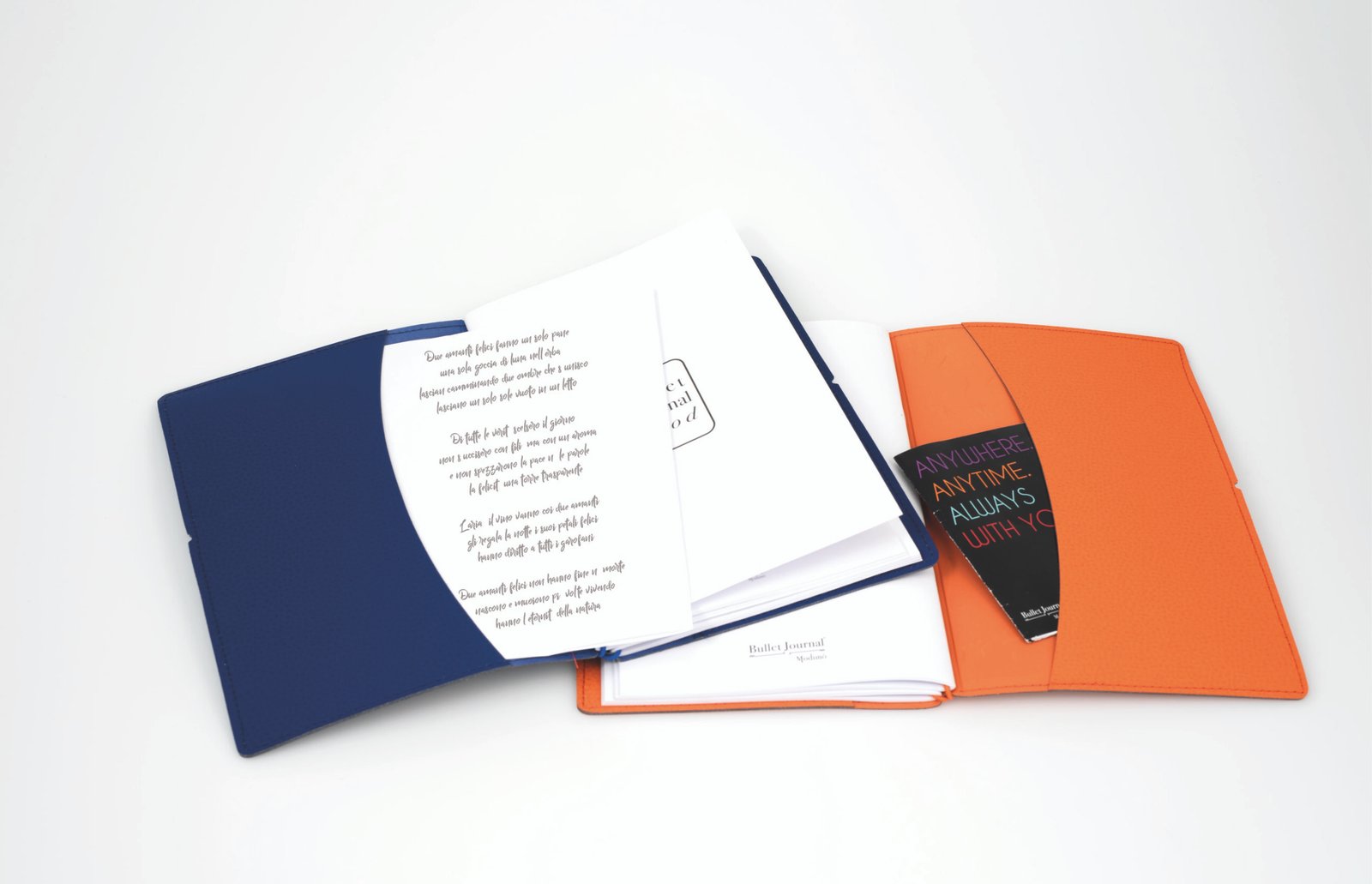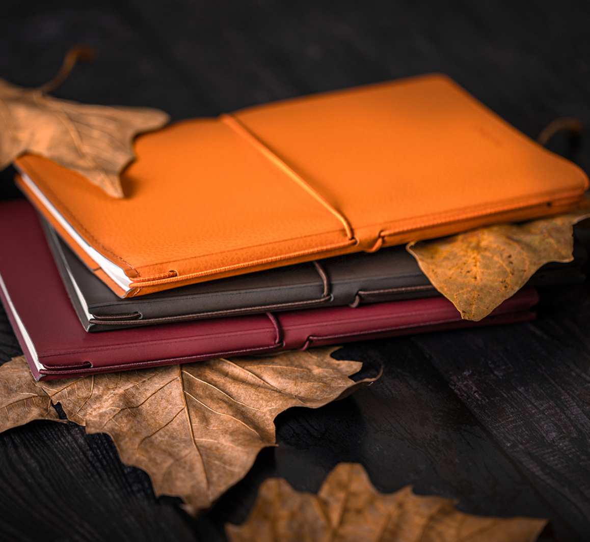 • Binding system: Patented elastic binding that holds two inner notebooks, allowing users to insert, remove, and replace them at any time. This modular system lets teams combine different content types (planner, notes, travel, diary, project inserts) and refill the product without changing the outer cover.