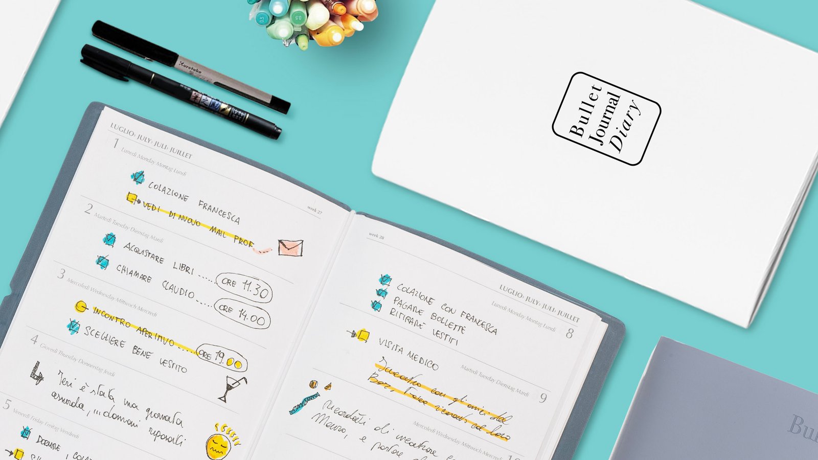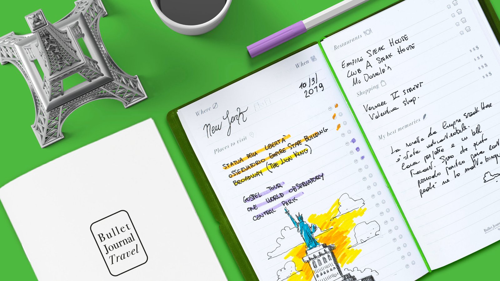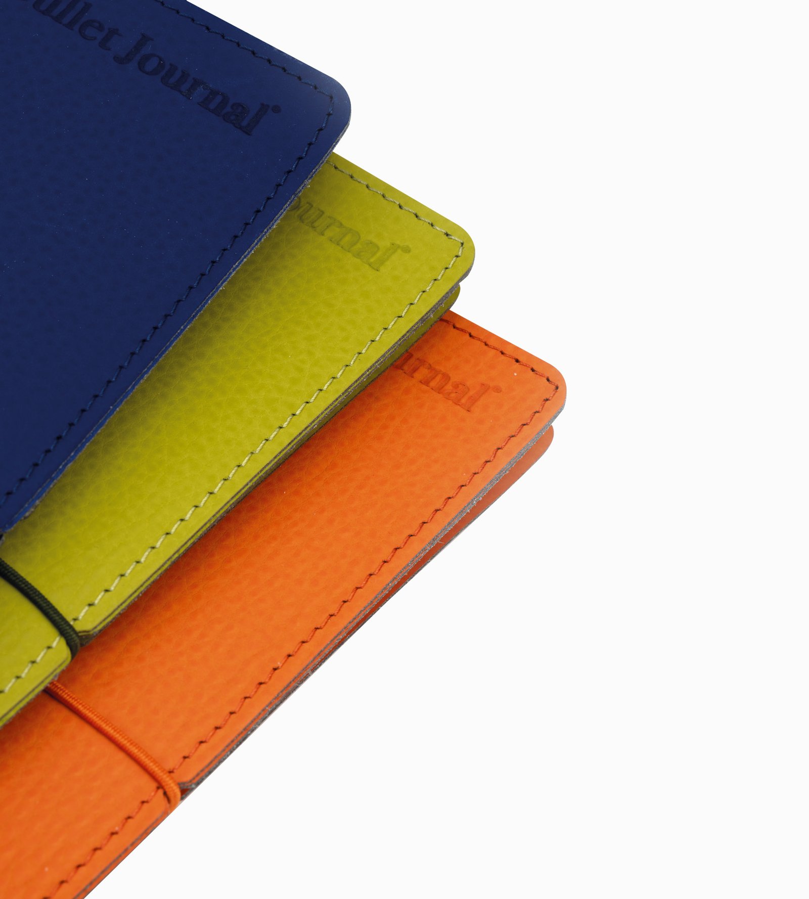 Premium bullet journal with elastic system, sewn edges, and inner pockets.
