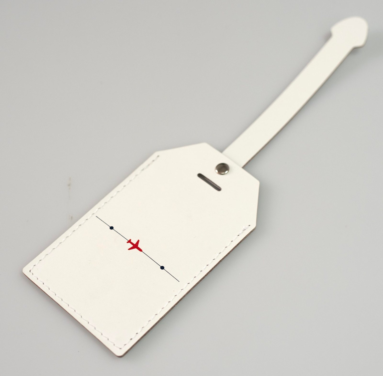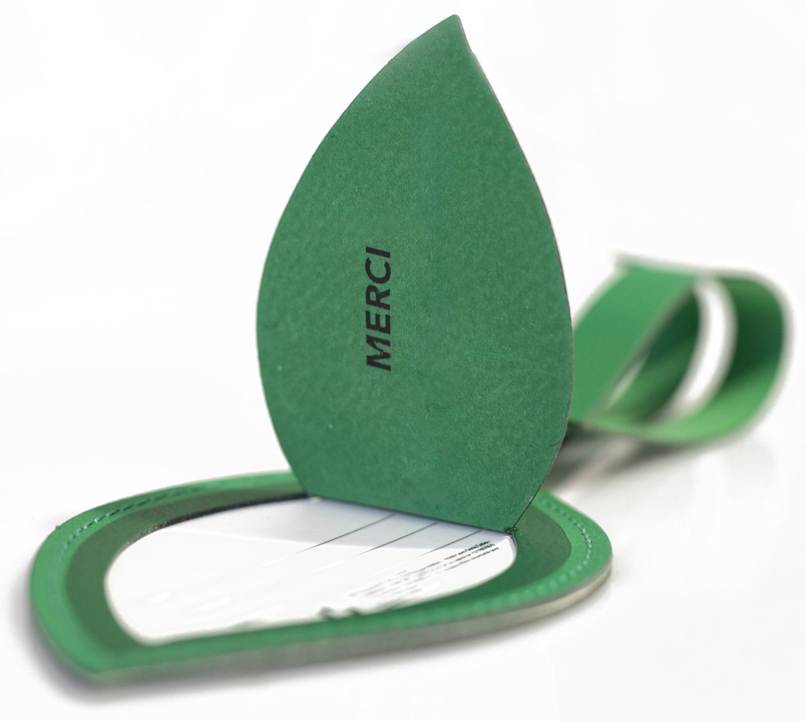 Upgrade your luggage with this secure, self-closing tag in 100% recycled leather fibres.