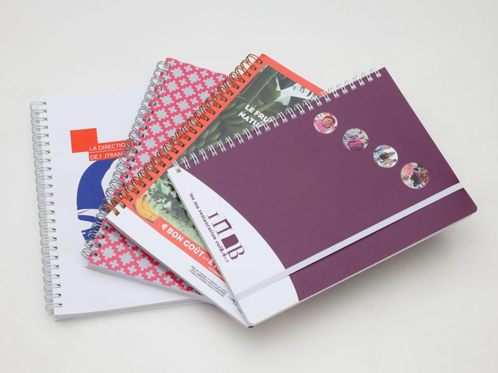A full print on all cover or inside extra company pages. The offset machine allows a perfect PMS reproduction on all surface. Generally this technique is preferred on larger orders or when the digital print cannot guarantee a perfect PMS color.