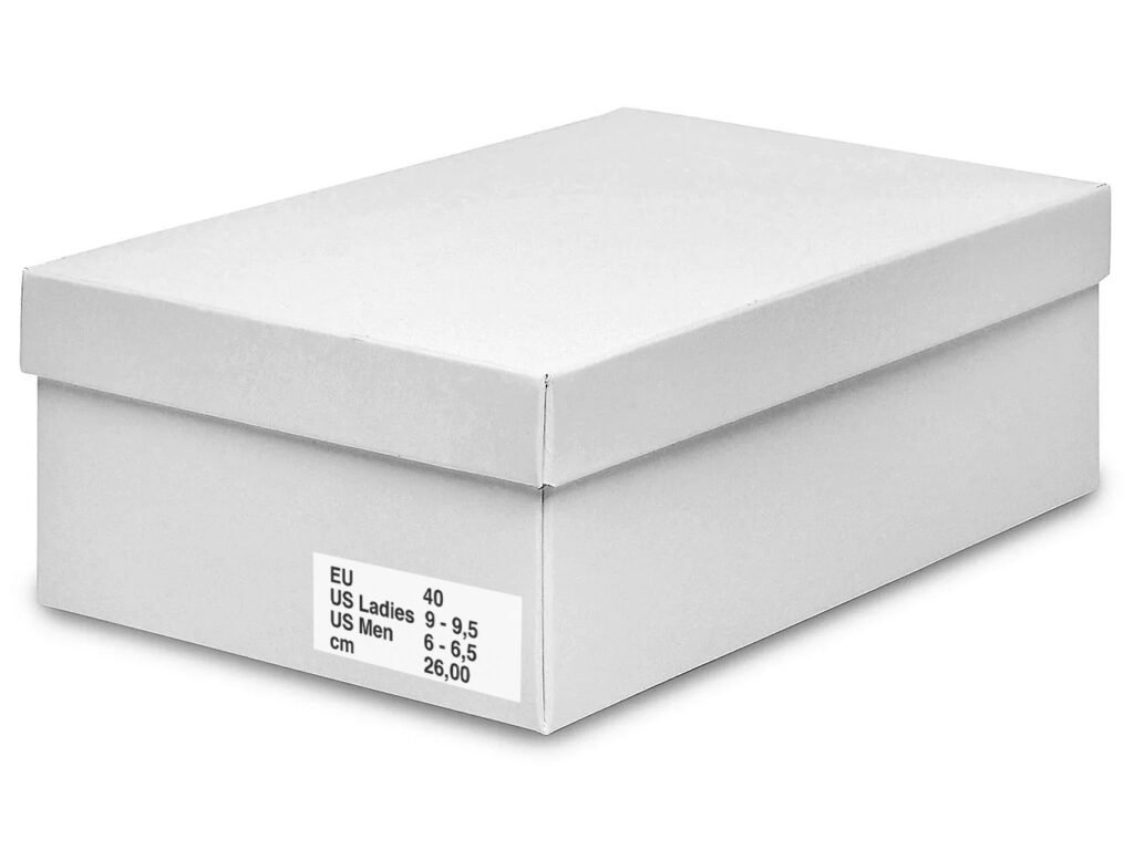 Includes a label with logo and shoe size.